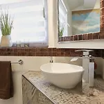 Οι επισκέπτες μπορούν να χρησιμοποιήσουν ιδιωτικά μπάνια με στεγνωτήρα μαλλιών και πετσέτες.